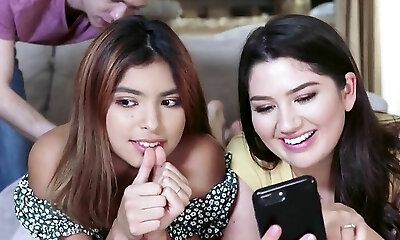 Hottest Asian girl in Horny Threesome, CFNM JAV movie