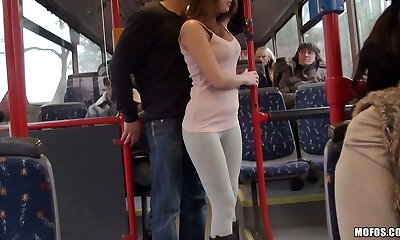 भूख जापानी कॉलेज लड़की एक भीड़ भरे बस पर प्रवेश कर