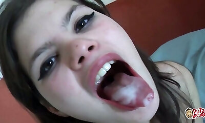 युवा लड़की रतालू-आकार के स्तन फाड़ बड़ी और Guzzling Jizm