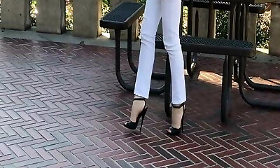 Teen skipping rope in high heels UPSKIRT views