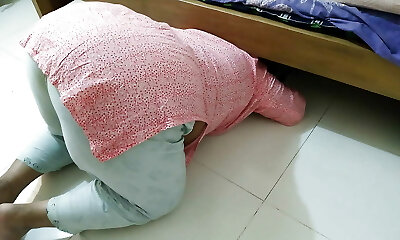 Gujarati Sexy Saas gets stuck under the table while cleaning, then Damad comes & Help her - Ginormous Ass Screwing & spunked
