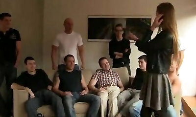 gangbang the teen, slutty teen blows Three cocks at the same tim