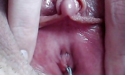 onanisme extrême en gros plan avec un énorme bouton de joie orgasme humide