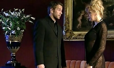 glamour towheaded avec tastey seins rails manstick et lui donne de la tête au théâtre