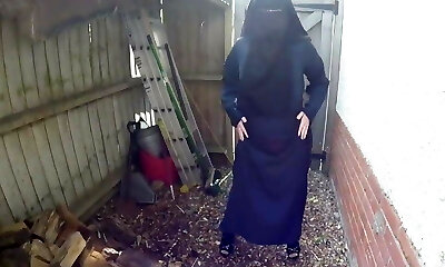 niqab cockslut! fette moslemnutte strippt im hinterhof!