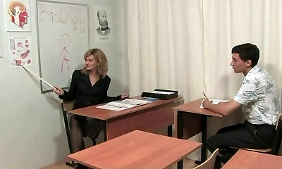 une enseignante salope est enseignée dans un état irrésistible et jouit à plusieurs reprises avec une incontinence charnue